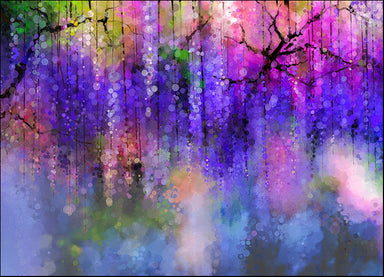 Keywords: Orientation Landscape (horizontal): floral, botanical, flowers, landscape, contemporary, digital, wisteria, bright tones, pink, purple, b...