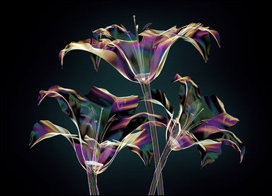 Keywords: Orientation Landscape (horizontal): flowers, floral, lilly, x-ray, black, purple, red, gold, green, teal, blue, nature