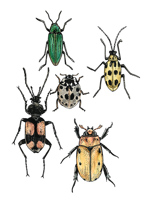 Keywords: Orientation Portrait (vertical): animal, insect, bug, illustration, watercolour, black, white, grey, yellow, green, orange, pink