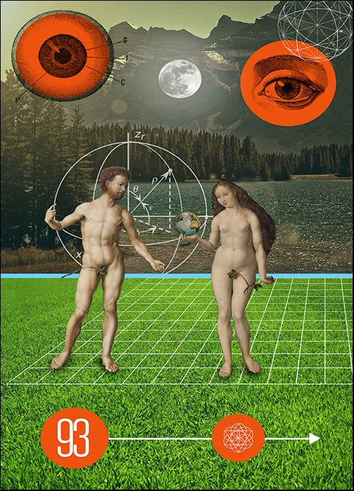 Keywords: Orientation Portrait (vertical): figurative, whimsical, surrealism, landscape, mountains, trees, mathematical, equations, blue, green, orange, brown, white, black
