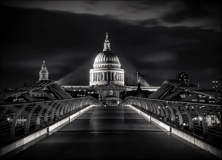 Keywords: Orientation Landscape (horizontal): photography, cityscape, buildings, architecture, black and white, night, light, st paul catherdral, bridge, black, grey, white