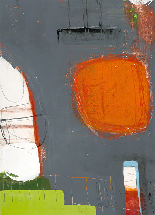 Keywords: Orientation Portrait (vertical): abstract, contemporary, shapes, grey, orange, red, blue, green, white, black