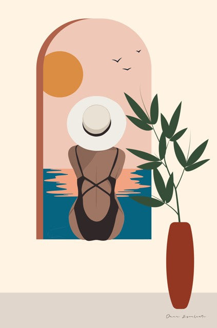 Escape the everyday and bring a touch of modern, minimalist style into your home with the "Luxe Traveler III" art print by artist Omar Escalante. This serene piece captures the tranquil feeling of a luxurious, sun-soaked vacation using warm, earthy pastels to complement any decor.