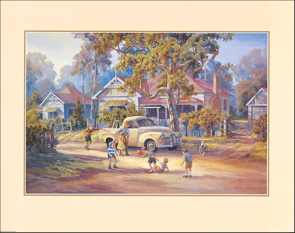Keywords: FJ Holden Ute with kids playing football