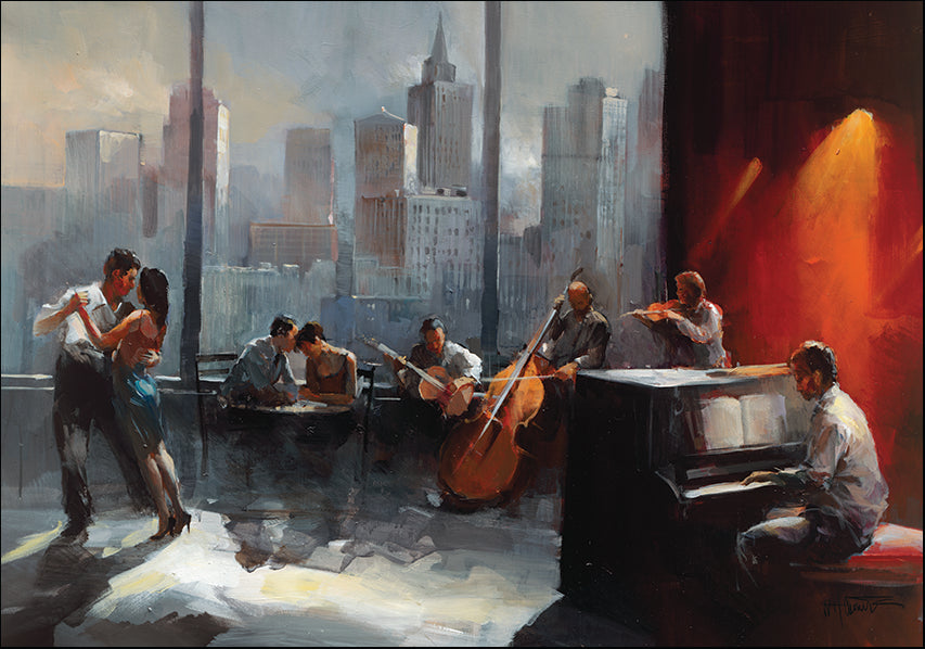 Keywords: Orientation Landscape (horizontal) : figurative, people, man and woman dancing, band, music, city view