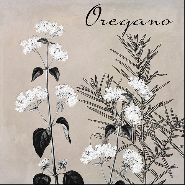 Keywords: Orientation Square: floral, botanical, flowers, still life, typography, food, herbs, oregano, black, white, grey, beige