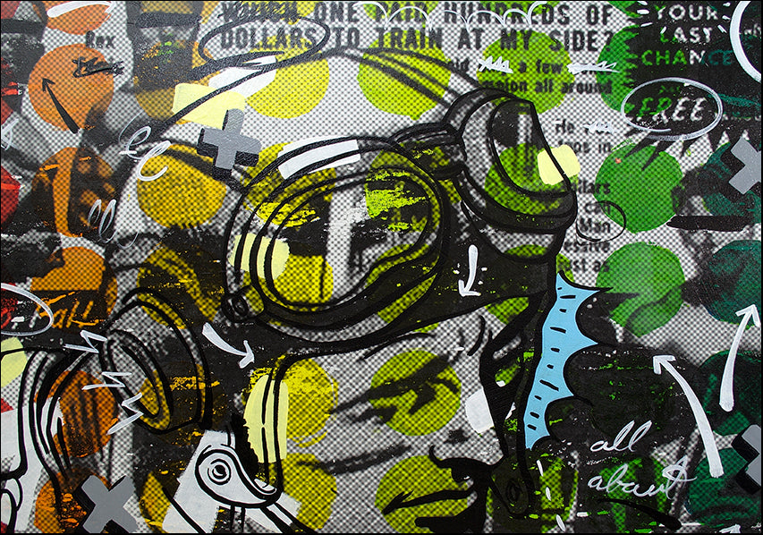 Keywords: Orientation Landscape (horizontal) : pop art, people, figurative, man, pilot, dots, green, orange, typography, free