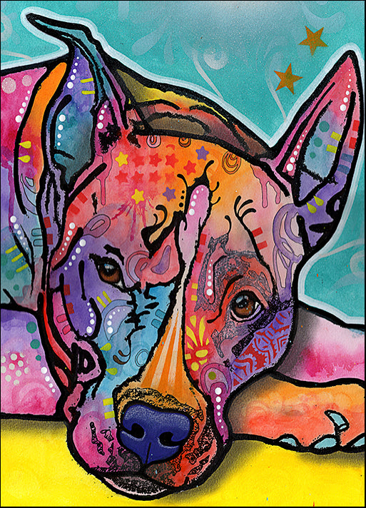 Keywords: Orientation Portrait (vertical): pop art, animal, dog, pets, pit bull, pattern, contemporary, red, orange, yellow, green, blue, pink, purple, black, white, brown