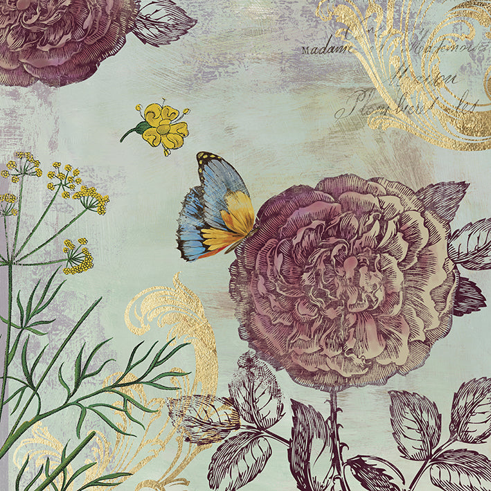 Keywords: Orientation Square: gold, brown, grey, burgundy, blue, sketch, flowers floral, writing, vintage, butterfly, insect, plants