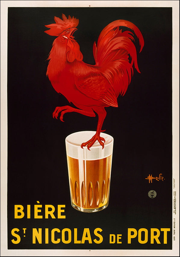 Keywords: Orientation portrait vertical : vintage, advertisement, typography, Biere St Nicolas de Port, animals, rooster, glass, beer, rooster on top of glass, black, red